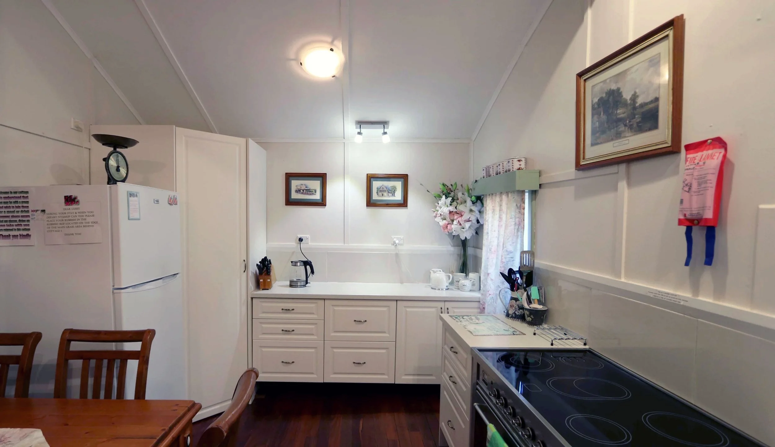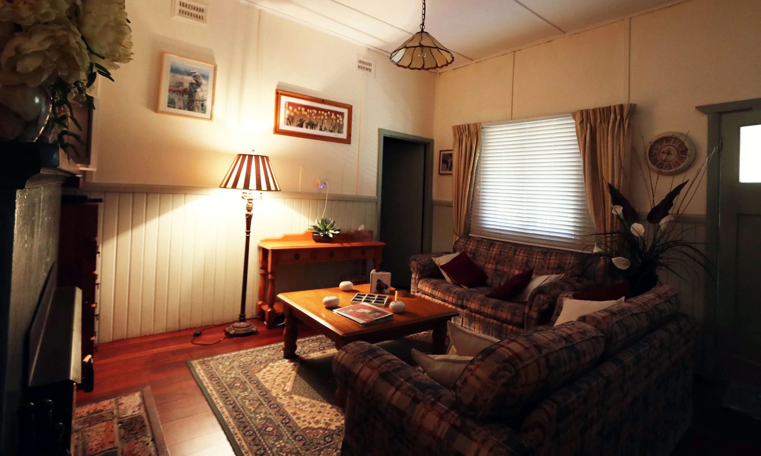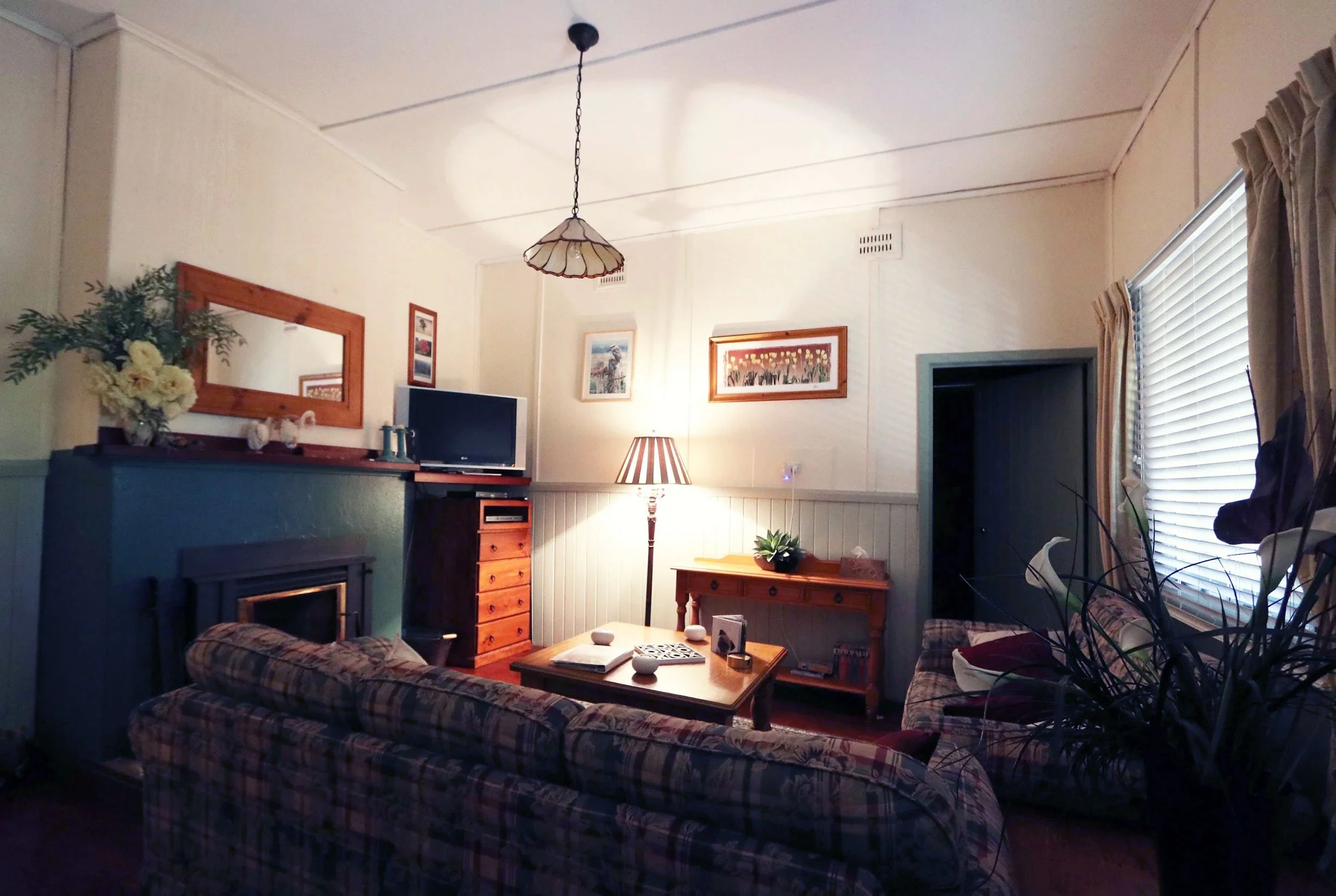 Fully renovated, this cottage includes full kitchen facilities, a dining room, and a separate lounge. Enjoy VAST Satellite TV, a DVD player, and a selection of DVDs, games, books, and puzzles. Outdoor settings are available on both the front and back verandahs, with a BBQ for al fresco dining. The lounge features a slow combustion fire, and the bathroom includes a shower, vanity, and toilet. A fully operational outhouse is also available. All internal water is filtered rainwater.
